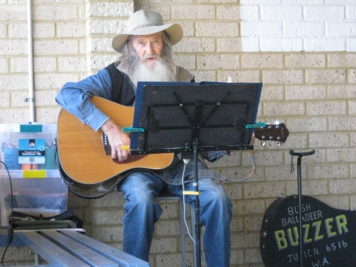 Brian Buzzard the Bush Balladeer dropped by our campsite to ask if we liked country music. He looked a little wild, as only the older Aussies can, so I gave him a ‘Yeah, well it’s not my favourite’ so as not to seem overly duped. He invited us to hear him sing, and after he left we decided that he looked relatively harmless, so we did just that.