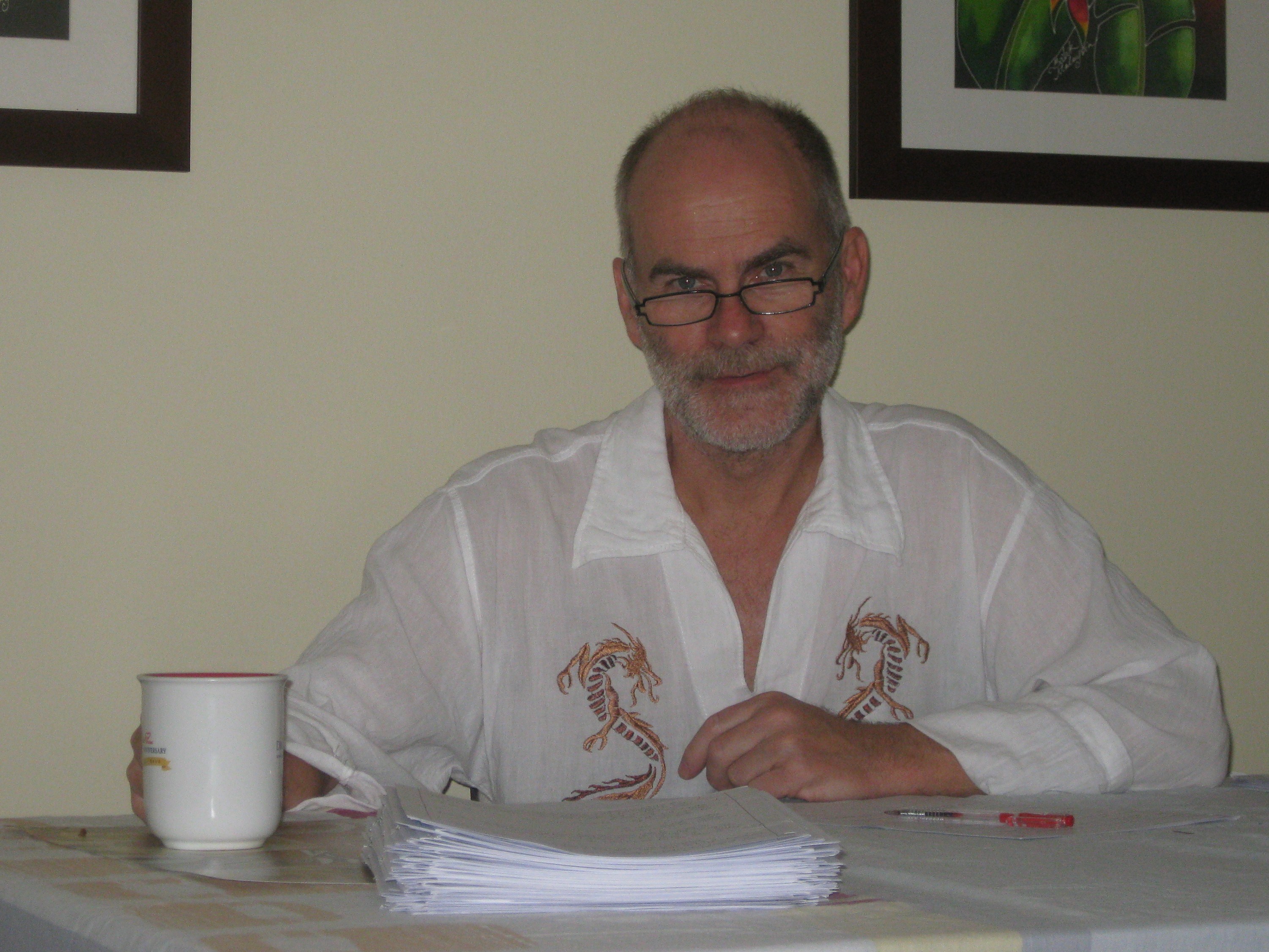 I figure at this level – final draft, having seen the essay three previous times – it takes me about 20 minutes to half an hour per paper. I try to mark six per night. That way I can keep up with the six presentations I hear each day in class. Some coffee and some classical music help get me through. That and the fact that Pam is on the other side of the world and I have nothing else to do in the evening!