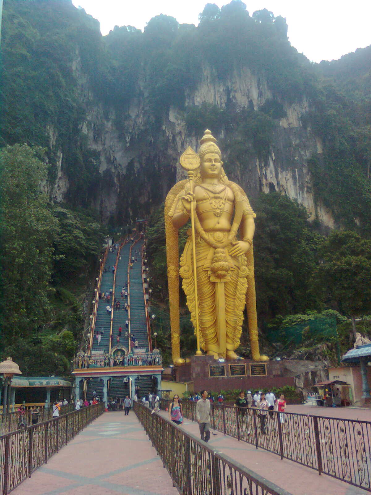 I had bought a good variety of fruit (although I unaccountably ‘lost’ a plate of it for a while, unitil I discovered it had turned turtle and disappeared into the door tray), and with some scrambled eggs and green tea had a decent breakfast. Then it was off to the Batu Caves, as the the Hindu shrine on the north edge of town is called. The drive out was uneventful, although we had to restrain Nicole from stopping off at the Ikea store. The three of them went up the 292 steps while I conserved my strength and plotted out a route back into the city.We do not own a car and rent one only on special occasions. Driving is problematic at best in this convoluted metropolis, and my scant knowledge of city roads and traffic patterns has got us into trouble on more than one occasion. Fortunately, Nic was up to the navigational challenge, and we made it to the Twin Towers parking lot unerringly.