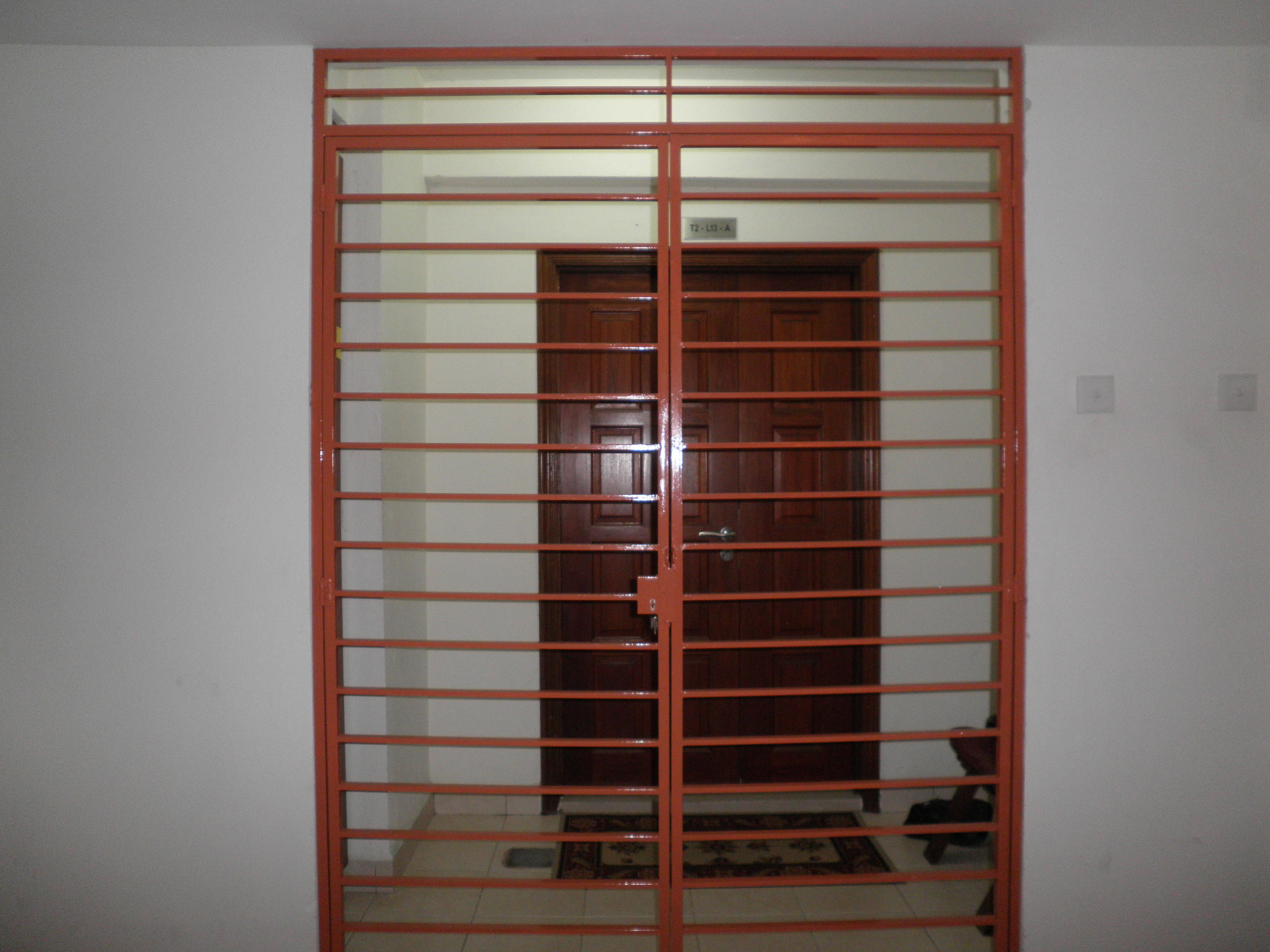I started by taking everything out of the cupboard and measuring the optimum height for the shelves of that cupboard. Then I drilled the holes for the brackets, cleaned the shelves and put them back, treating them with disinfectant to dissuaded the ants. Then I moved on to the next cupboard. By the time I was done, four hours later, I had shelves I could live with. They are all quiet now, and so am I. Two weekends ago – a long three day weekend in honour of May 1 – I sanded down and painted the security grillwork outside the apartment a mocha brown to match the floor tile in the hallway.