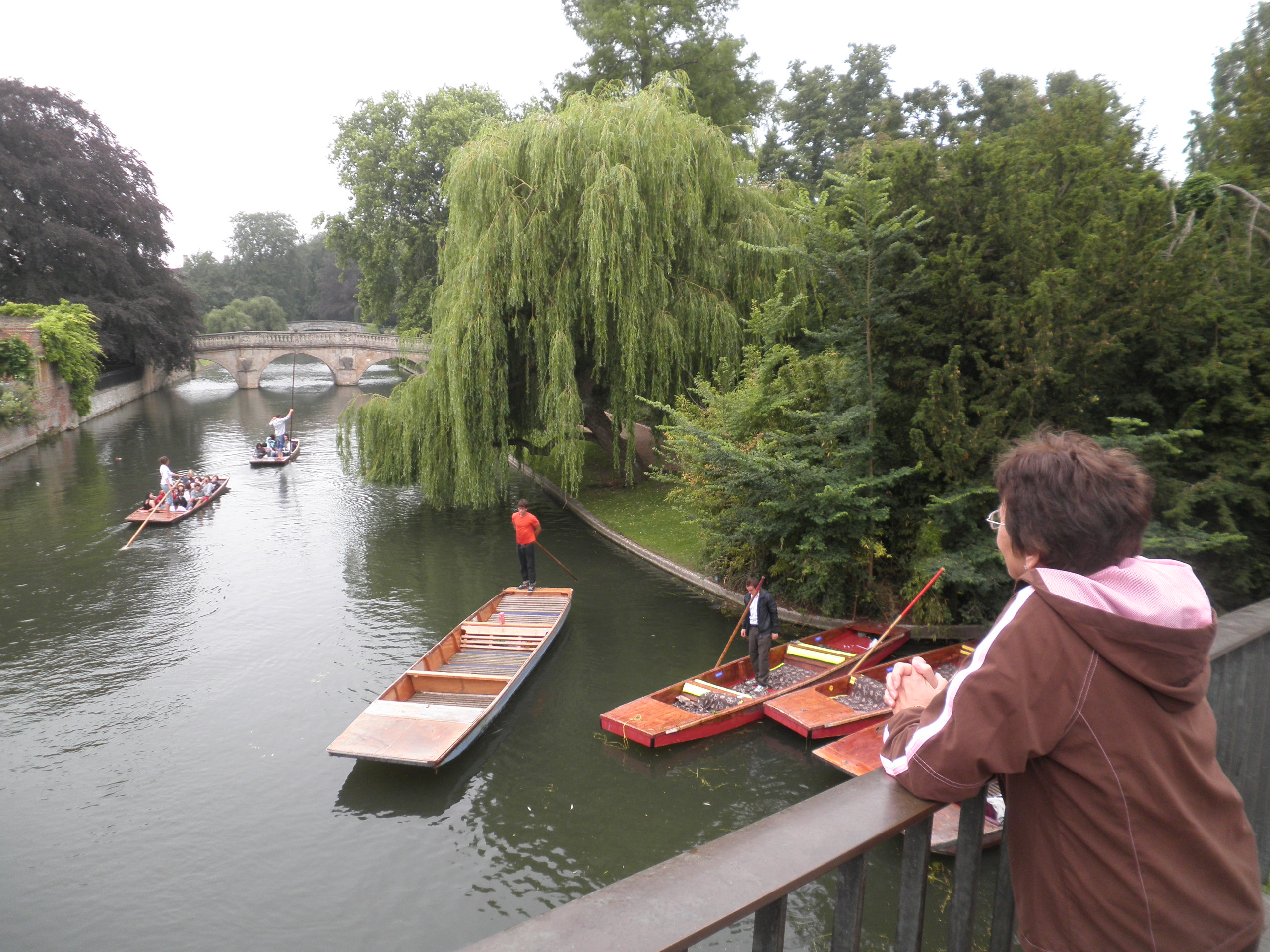 Today after a full British breakfast that included peameal bacon, sausages, fried egg, hash browns and beans (so much for THAT diet!) we headed into town for a good look around. You can see a little bit of the charm of this university town with its medieval roots in these pictures. What you can’t see is the atmosphere of genteel respect for nature and learning that inhabits this place. Parks and walkways extend everywhere, people cycle and walk in easy ambience along the ancient cobblestone streets past doorways, arches and cloisters that are dressed in ivy and painted with age. Stately oaks and beeches gracefully line the gravel paths; boats are punted up and down the canal past colleges that were old before Shakespeare was born. It was lovely place for a reunion.