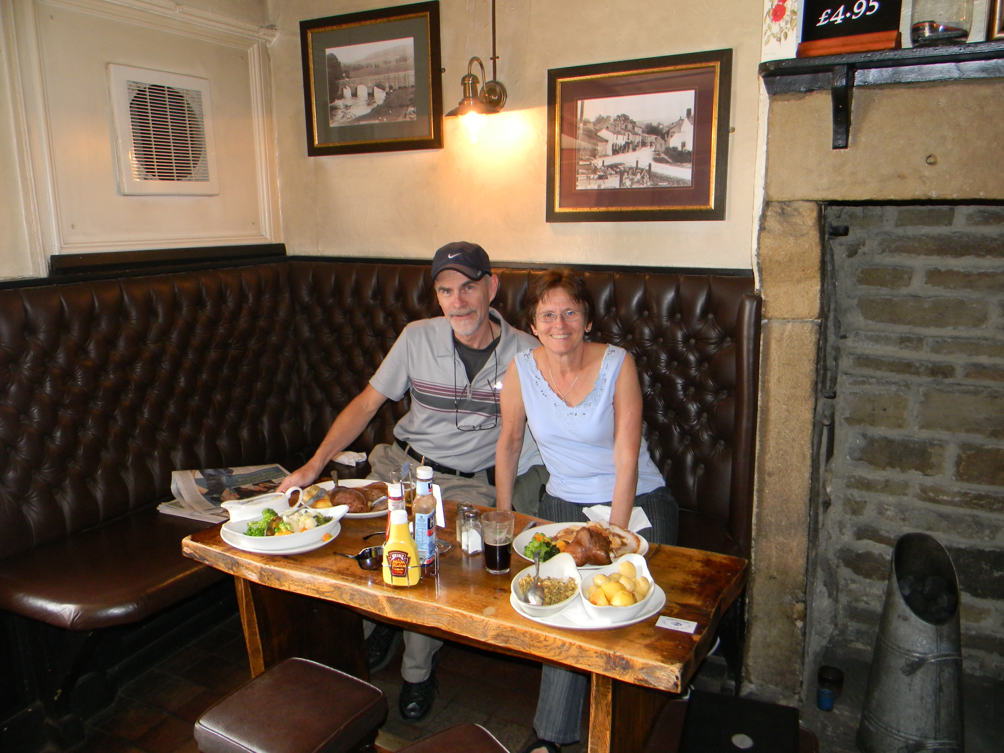 Finally after a few close calls with oncoming traffic in roads really only wide enough for one vehicle, and a few wrong turns that led to sheep pens and not much else, we arrived at our destination: the little village of Kettlewell. Pam, in her usual thorough investigation of accommodation while we are travelling, found Pennycroft, a little B&B which we have entirely to ourselves, including a view of the main intersection of this tiny village, and a delightful English country garden out back. To bring an end to a wonderful day, we enjoyed the Sunday roast beef dinner, with roast and boiled potatoes, cauliflower, broccoli, garden peas, squash and gravy, and most appropriately Yorkshire pudding, as light and fluffy as the lovely croissants we had for breakfast.