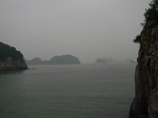 Cat Ba Island is the largest of an archipelago of islands in Ha Long Bay, recently selected as one of the world’s seven new natural wonders. I don’t know what criteria was used in this selection, but it is a truly beautiful place. It is winter in Vietnam, and it is far enough north of the equator here to be cool even in the mid-afternoon. It is not the time of year to go swimming, although we did wade in the water. But we didn’t come here to swim, we came to walk and take a boat ride out into the islands. This afternoon we contented ourselves with a walk around the edge of the bay from our hotel into town. It was a spectacular vista.