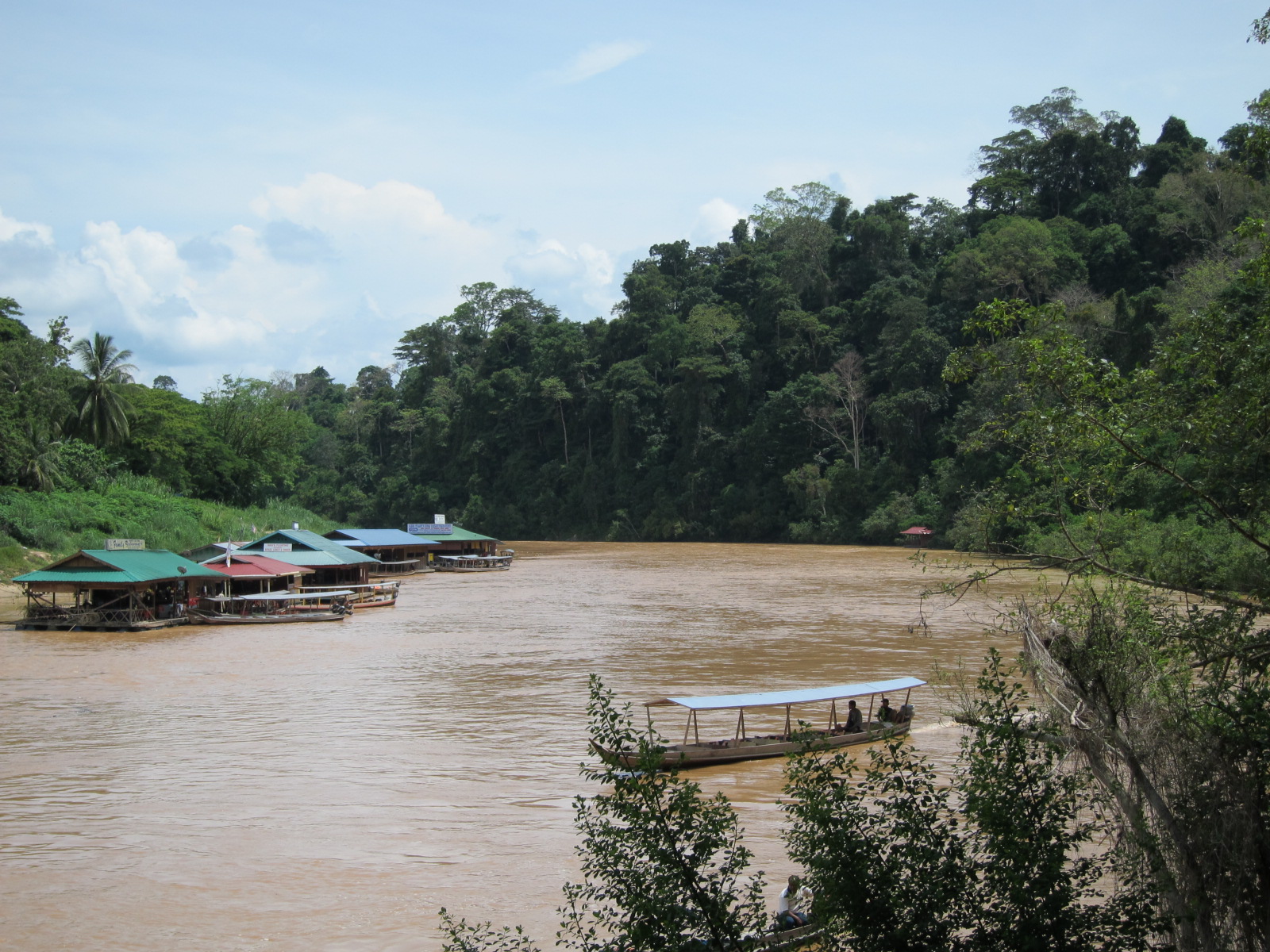 About an hour up highway 98 brought us the sleepy little town of Jerantut. Turn right at the t-junction and 8 clicks down the road you come to a left that is well signposted for Taman Negara. The road is a little rough at first, but once you hit the stretch alongside the plantations it gets better. Then it gets worse again, a lot worse. There are potholes that eat little cars like ours for breakfast. An hour up this road brings you to Kuala Tahan, quite literally the end of the road as the Pahang River is in front of you. Across the river is the Mutiara Resort, quite possibly the nicest Malaysian owned resort in the country and our final destination.