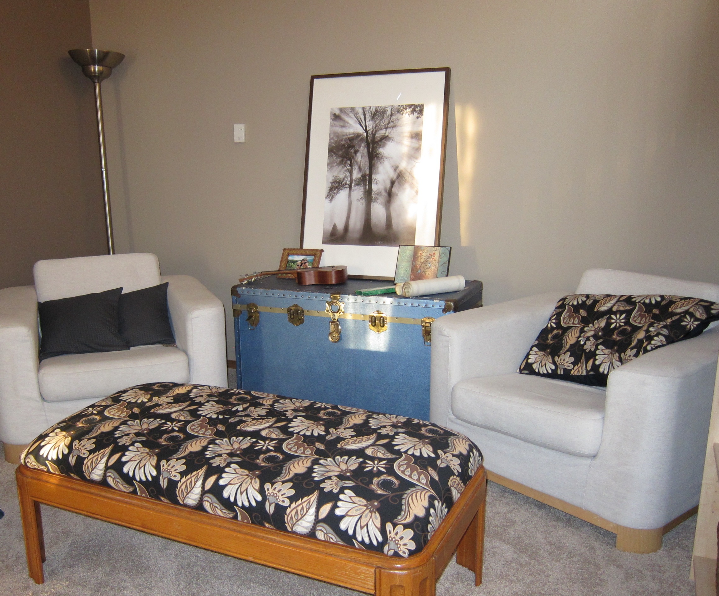 While Steve is back in KL finishing out the school year, I have begun the annual visit home to Canada with the first stop being an amazing week in Calgary with Greg and Liz, in their lovely new home. We have made the most of the time. Liz and I picked out livingroom drapes and material to convert an old coffeee table into an ottoman, made a couple of matching pillows and valance for the front door.