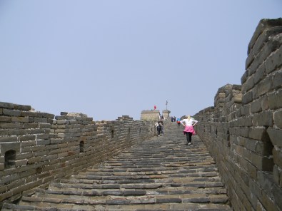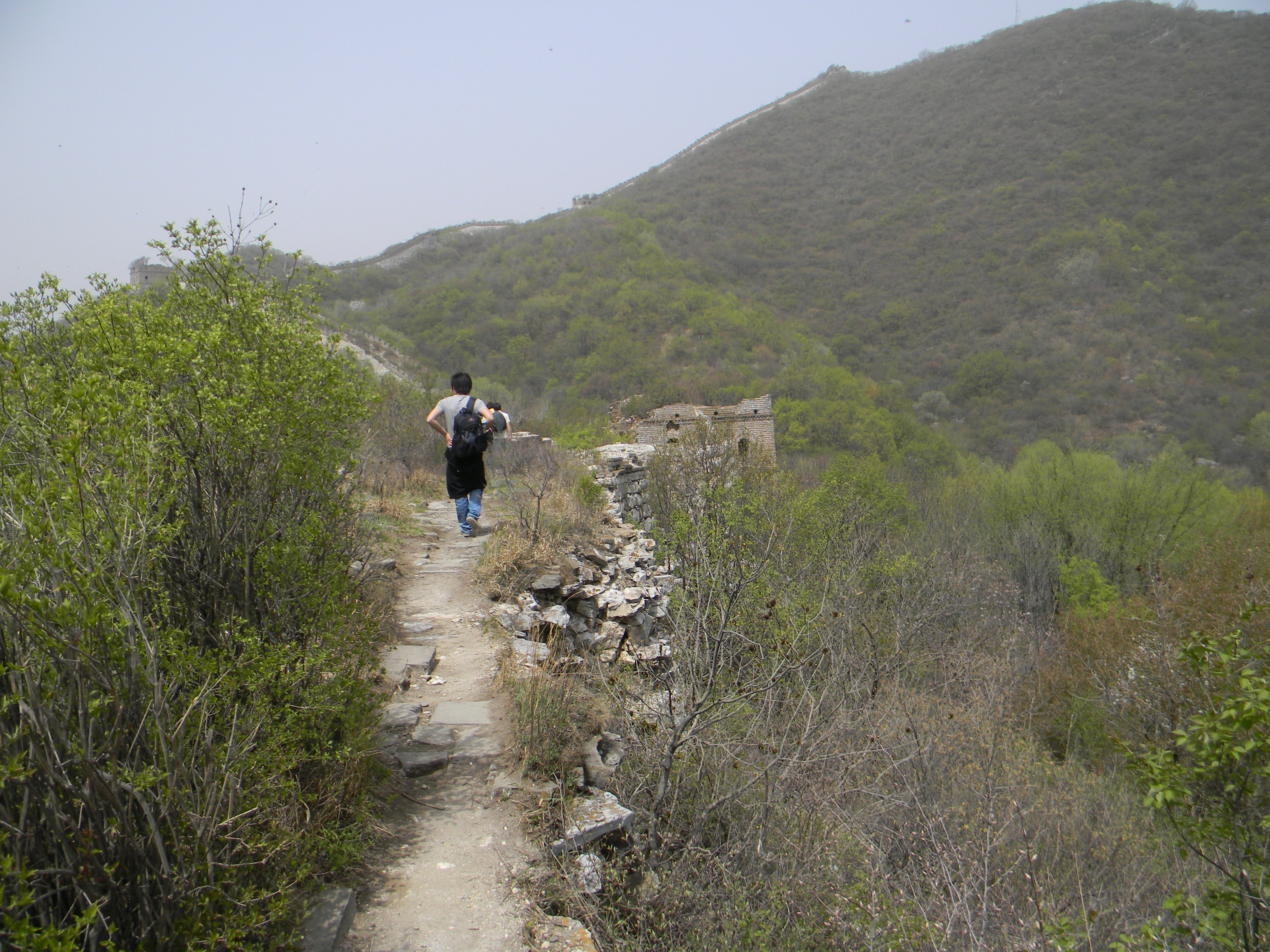 Pam and Moochi had run out of steam by tower 18, the last row of very steep steps proving too much. Shelley went on to tower 19 and took some videotape of me doing Tai Chi on the wall before she went back. I struggled on past tower 20, onto a stretch of unrestored wall. This is where it gets a little tricky, with no restraining wall and the ground dropping steeply away beneath a crumbling trail. I contented myself with one more kilometer before I too allowed discretion to overrule my enthusiasm for exploration. With a week of walking through Beijing and Shanghai before me, I did not want to risk twisting an ankle for the sake of amateurish bravado and bragging rights.