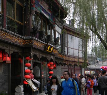 Rather than go back to the hotel, we had our driver drop us at the Bell and Drum Towers just north of the Forbidden City where we got a bite to eat on a rooftop restaurant overlooking the square. Suitably refreshed, we explored the little shops around the square where Pam and I found a wall hanging for that bare space above the television at a Chinese art shop. Then we headed into the hutongs, the little alleyways that line this side of town, bordering one of the many ponds and little lakes that dot the city. The ladies bought some scarves and we wandered until we could walk no more and then grabbed a taxi for the ride back to our hotel. It had been an amazing day!