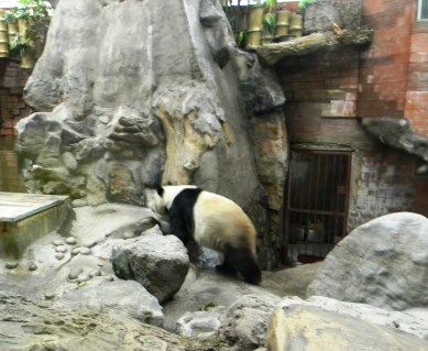 Exiting through the north gate brought us back onto a road thick with holidaying people. Getting a cab was out of the question, so we walked down the east side of the wall until we found a little tea shop with a rooftop restaurant where we got very slow service and a rather pedestrian meal. However, the tea was lovely and refreshing and it did give us an opportunbity to plan out the rest of the day. Pam and Shelley decided to go shopping at a nearby mall, while Moochi and I opted to brave the crowds at the zoo to see the pandas.