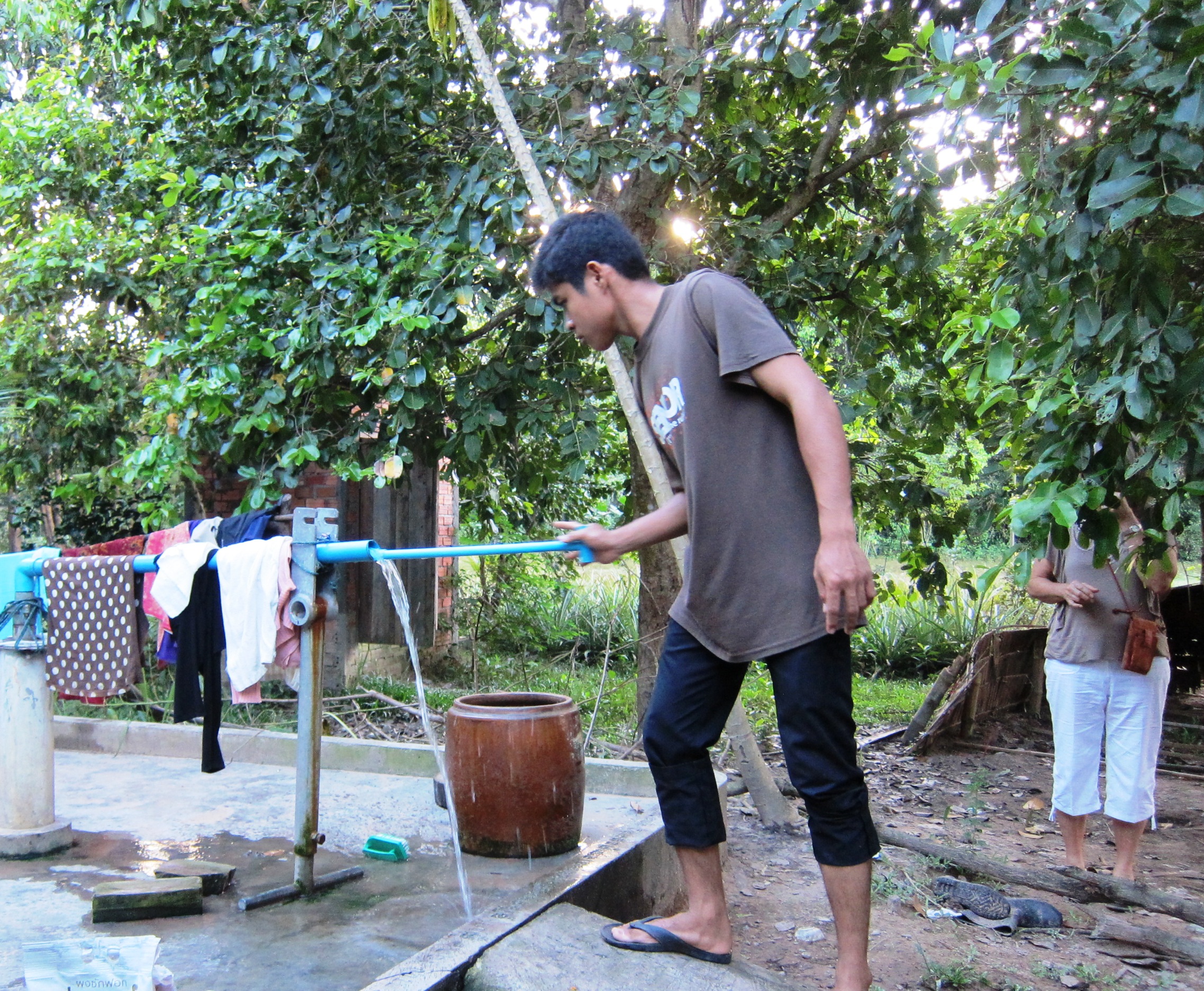 They were very proud to show us their demonstration garden, meringa plants, fruits, vegetables the mango seedlings they are raising for the community, and even a lovely little garden surrounding the falg pole created simply for its beauty and peace. They also have built their own Kindergarten where about 30 of the community children begin their education. In this village the homes have a clean water supply, a brick outhouse, composting areas, a separate cooking area and receive regular visits and education from their CHE volunteers.