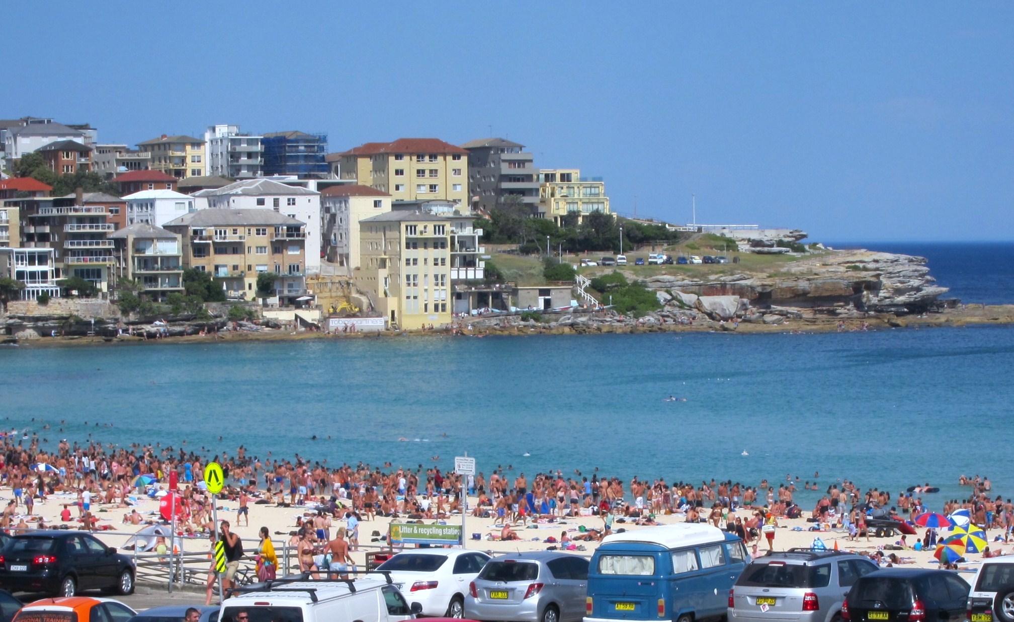 The open topped, double decked bus provided some great views but the blazing midday sun and 43 degree temperatures quickly drove us back into the air-conditioned lower level. A stop at Bondi Beach sounded very inviting and it was indeed a very beautiful beach, but most of Sydney was there before us and it was pretty much standing room only. We did manage to find a quiet little restaurant for a salad and cool drink before we continued on our “guided” tour of the city.