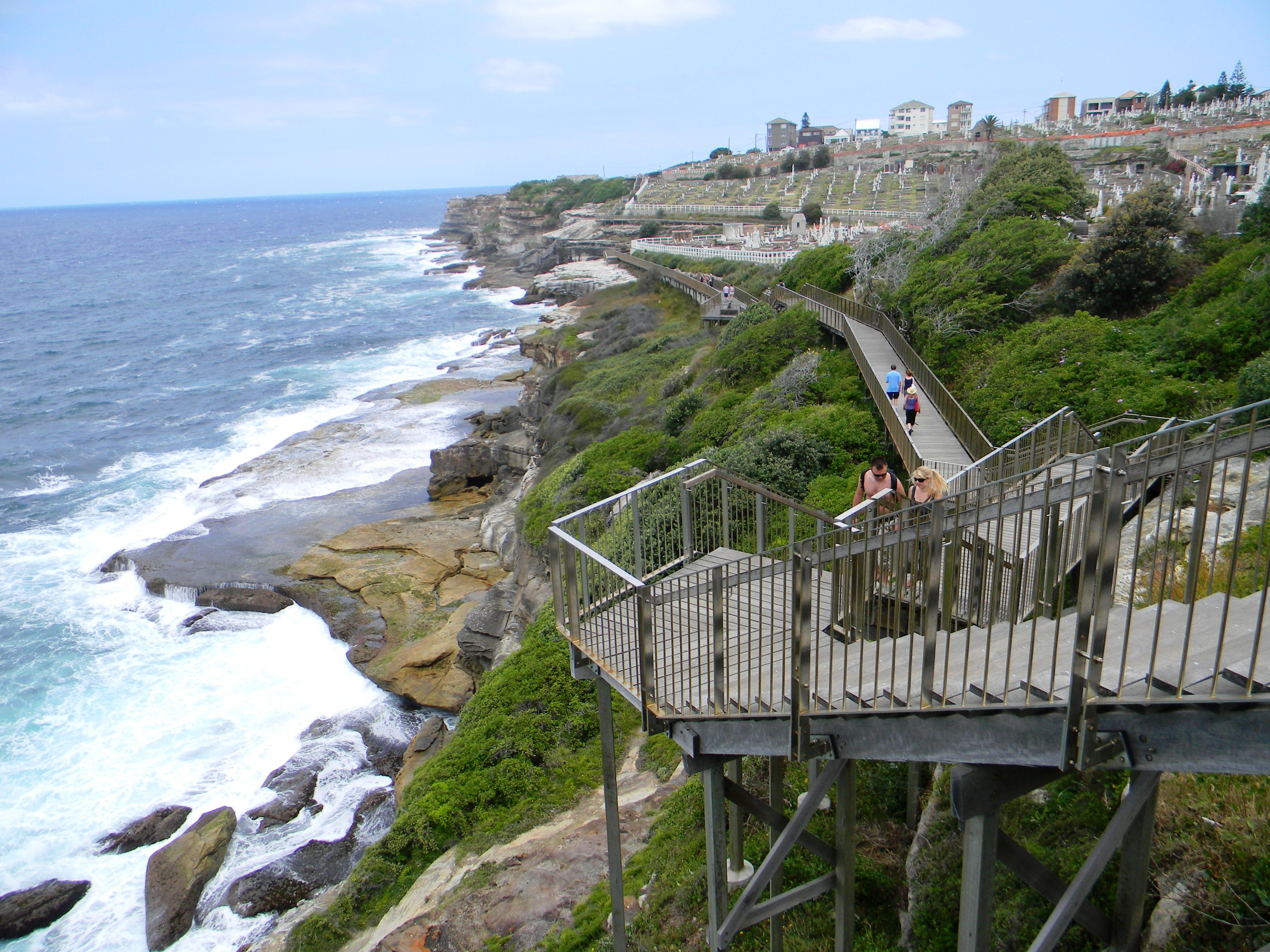 My favourite was Bronte Beach, named not for the writer, but for Lord Nelson, Duke of Bronte. Despite that literary disappointment, the beach was very nice. It is scorned by surfers as its narrowness and embankment of shale rocks make it unsuitable with better beaches at Bondi and Clovelly nearby. It is therefore free from the aggravating surfer dude culture that characterizes the larger beaches, making it not only safer for swimmers, but quieter, more relaxed and more civil. I had a very nice fried fish for lunch at a little spot overlooking the beach at a reasonable price without having to listen to a single misogynistic word before pushing on.