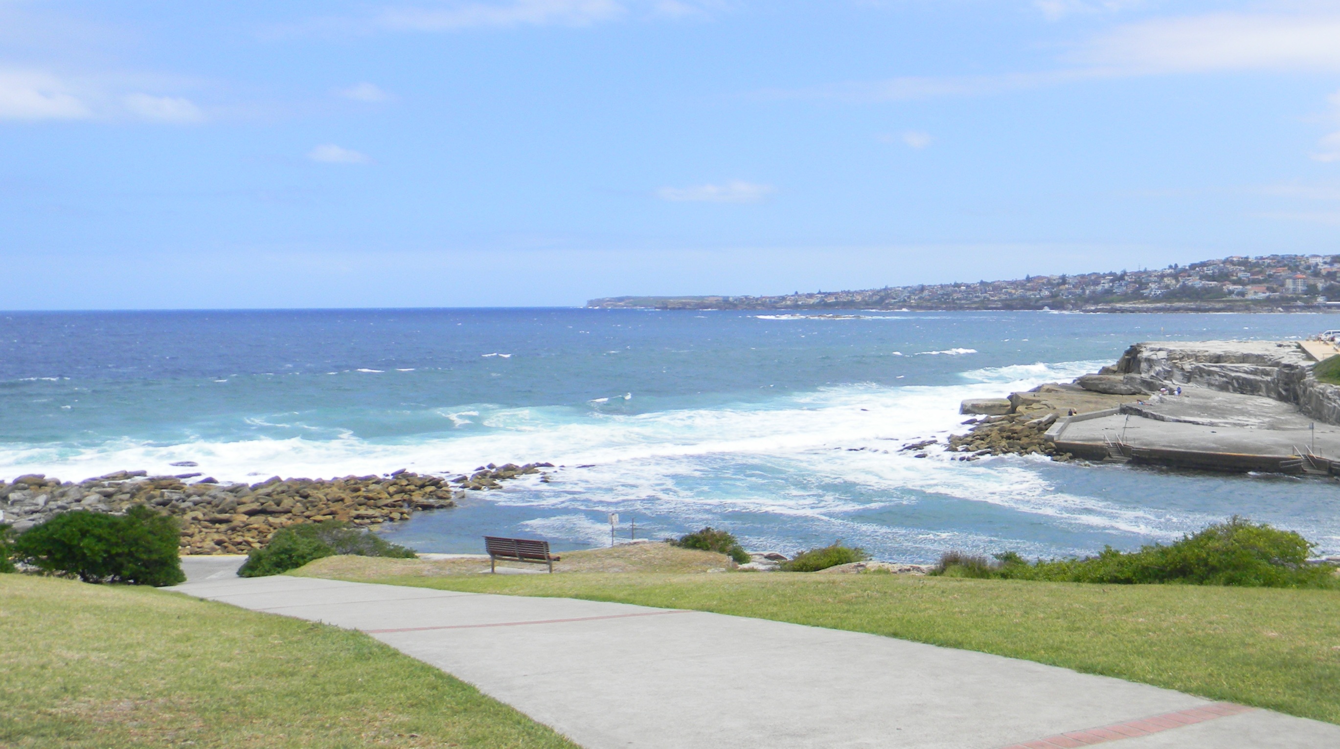 The bus to Bondi starts at the appropriately named Victoria Street and the driver will be looking for exact fare so buy the bottle of water you are going to need at the beach and get some change. Buses in Sydney are clean and fast and I enjoyed the ride. The bus will go right down to the beach itself, but the nicer stop is the one at the top of the hill so you can take in the view. I went early on a cool day before the crowds and the heat built up. Pam and Shelley had gone a day earlier in the middle of a scorcher of a day – 43 degrees Celsius – and the beach and the water were wall to wall with people. I am glad I chose a cooler day for my walk!