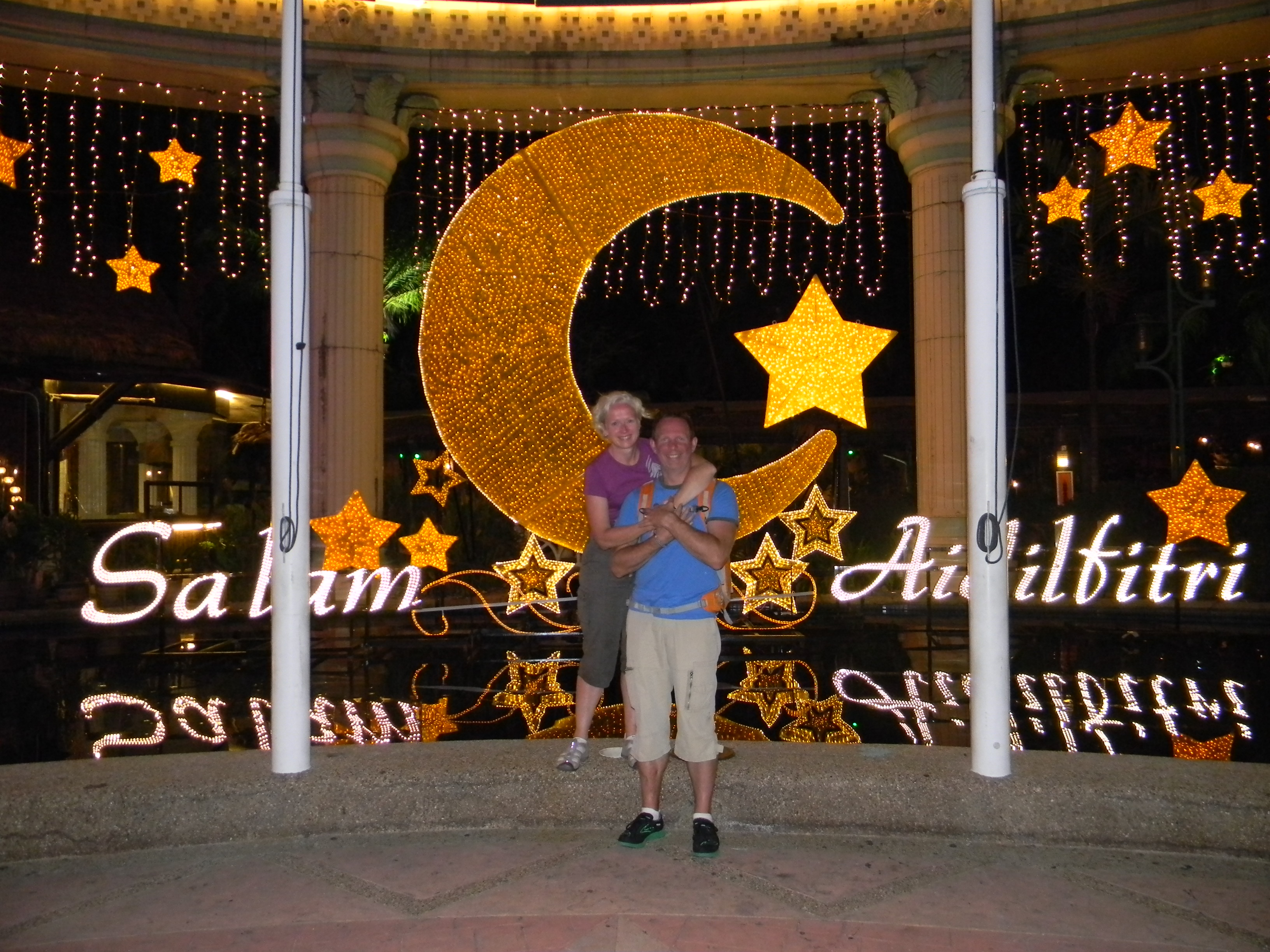 We climbed all 300 steps to the Batu Caves, and since the cable car was down for repairs, drove all the way to the top of Genting Highlands, Pam’s terror greatly modified by the fact that she couldn’t see anything of the road ahead through Matt’s head. Once at the top we had a lovely buffet meal which we didn’t rush through, and even took the time for a brief look at the Sunway Mall, all lit up in honour of Ramadan. They all got way too much sun lounging around the pool (while I ran around in panic mode at work) and slept comfortably in the guest bedroom (to which you, gentle reader, are also invited), having exhausted themselves in the service of the Lord at English camp in Cambodia.