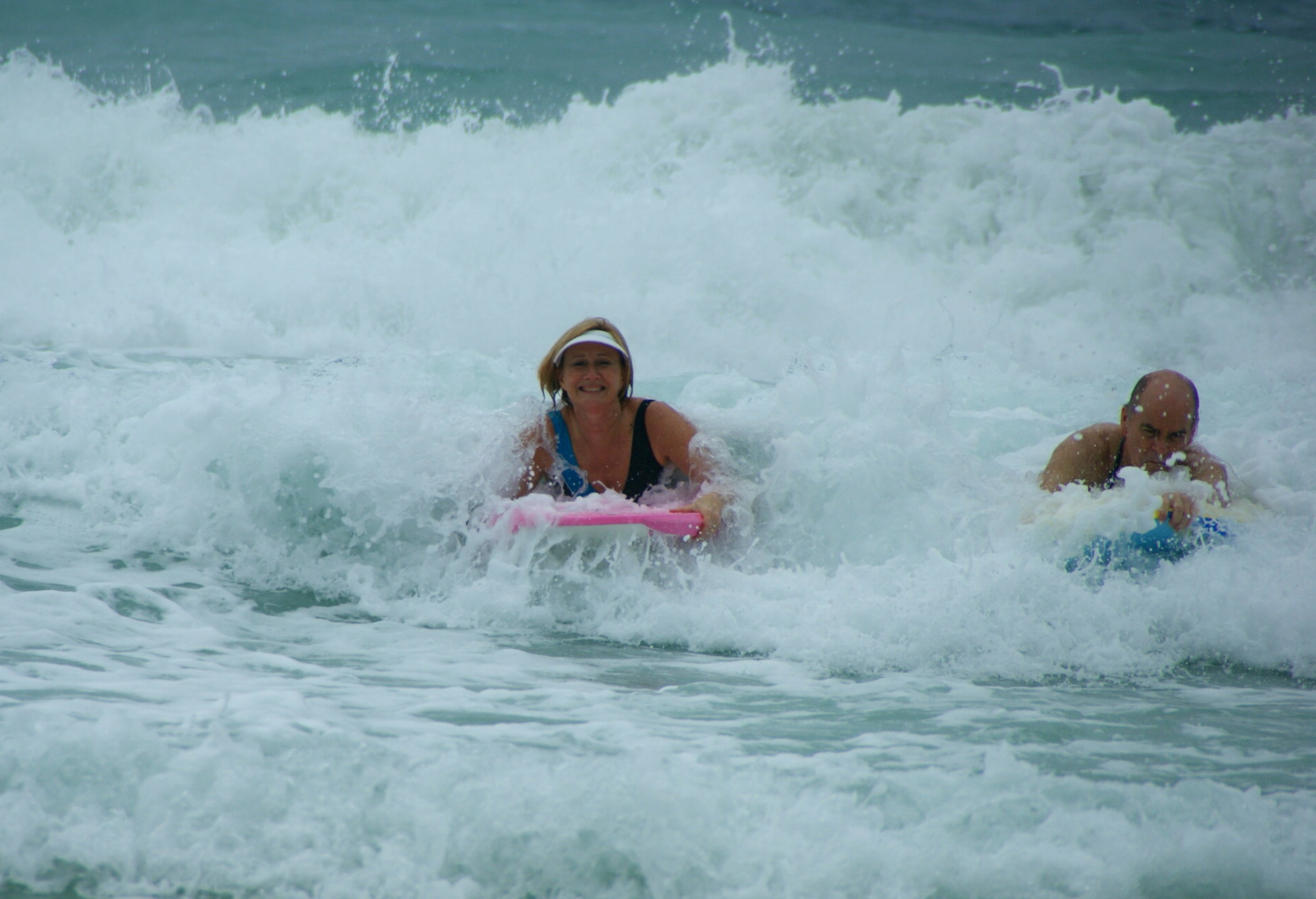 Steve rustled us up four boogie boards and we spent the next two afternoons riding the waves. We all had some pretty amazing runs. It was so sad to know that the beautiful coral reefs and colourful fish we came to see were only feet away but completely unreachable because of the rough seas. We had internet access, plenty of books, tons of snacks and drinks and a deck of cards and great friends with us. Not at all what we hoped for but it was fine in spite of Shelley falling on the steps and landing on her computer. And they got to experience monsoon rains up close and personal- enough for a life time.