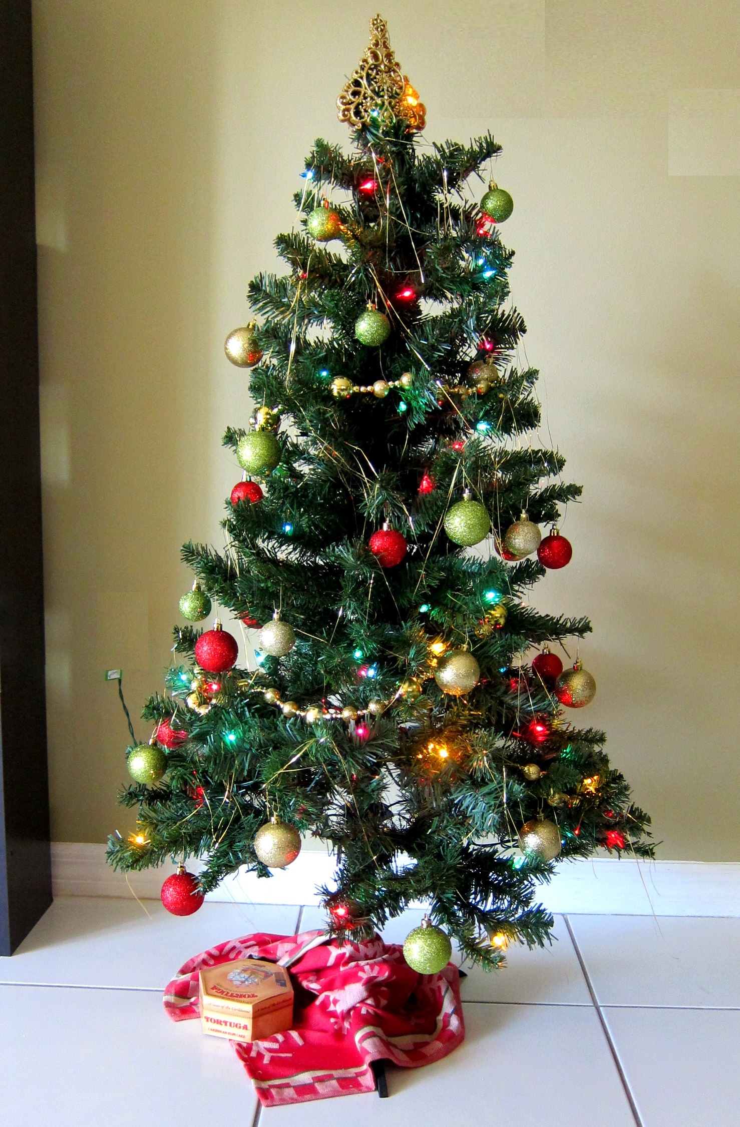 It has been ten years since we have had a Christmas tree and I was sort of hankering after one since we will be at home on Cayman for the holiday. However, once I discovered that even a four foot artificial one would set us back about $120 Canadian, I decided that it was not to be. But a few weekends ago we dropped in on one of the endless funding raising events at this time of year; a tailgate sale in a nearby parking lot. Unbelievably, a month prior to Christmas someone was selling a brand new four foot tree with lights and I got it for 10 bucks. It felt like winning the lottery; or at least as close as I will ever come to it. We are so thrilled to have our little tree and are looking forward to have six or eight of Steve’s co-workers here for a turkey dinner on Christmas Day.
