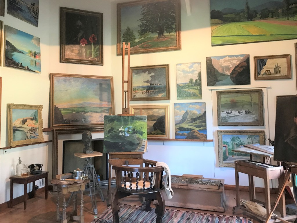 Churchill loved butterflies, an interest that dated back to his time in India. He instructed his gardener to grow plants that would attract them, and even in late February, the air was fragrant around Chartwell with the smell of camellia, laurel, begonia, lavender, valerian, and buddleia. Crocus and daffodils were scattered widely across the grass verge that sloped down to the lake. At the bottom of one of the gardens, Churchill converted an unused stable into an art studio and began painting in earnest, an interest he maintained until his death. Many of his paintings are set in nature and reflect his love of light and colour in what must have been a dark and troubled life in politics.