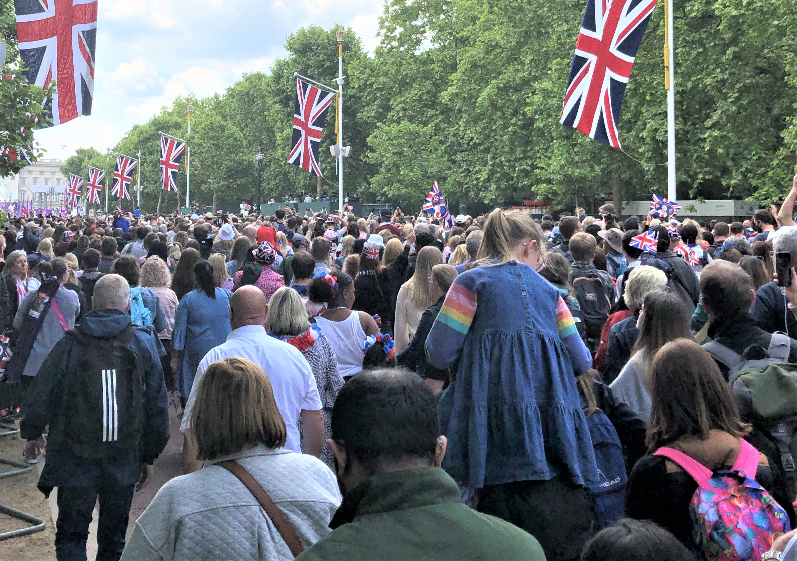 There were thousands of people in town, and the trains and stations were absolutely packed. But Horsham is early on the train line to London, so we all had seats and chatted happily among ourselves on the ride to town. At Victoria Station we joined the crowds moving through Green Park and found a pretty good spot on the Mall only about six rows deep from the front.