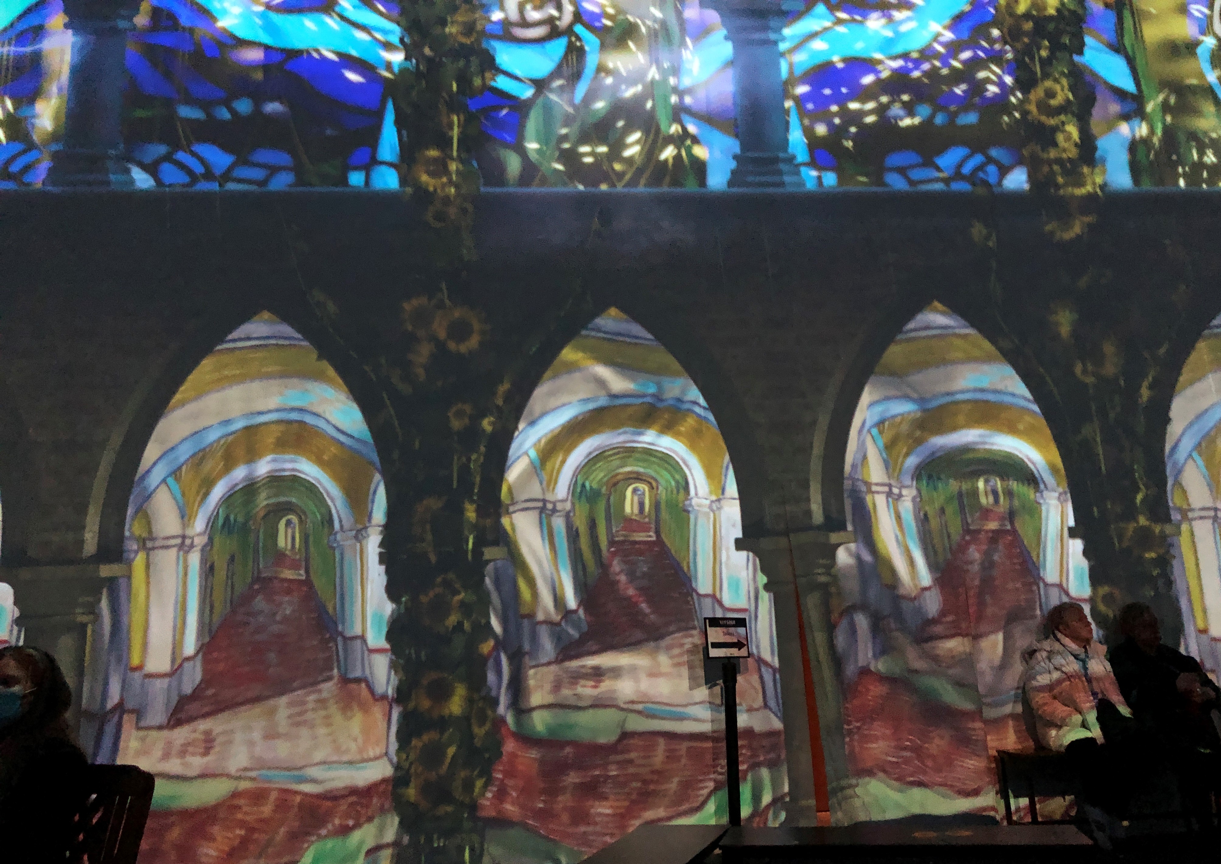 There are a number of his paintings at the National Gallery in London that we stop to look at each time we go, including his famous “Sunflowers.” So when the Van Gogh Immersive Experience came to London, we made a note of its location and cost and this week took the time to go into town and enjoy the show.